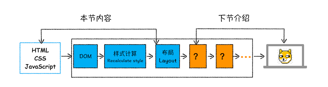 从图中可以看出,本节内容我们介绍了渲染流程的前三个阶段:DOM生成、样式计算和布局。要点可大致总结为如下: