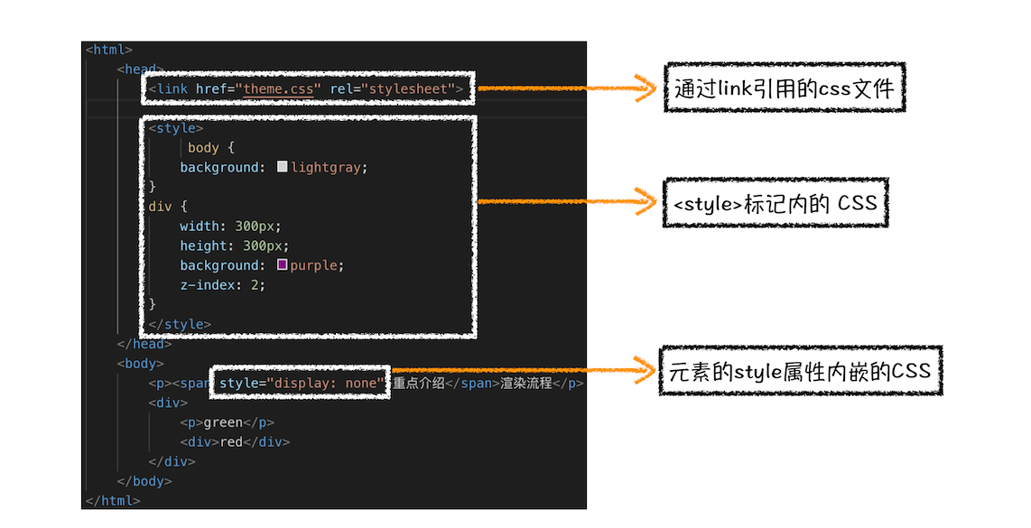 那CSS样式的来源主要有哪些呢?你可以先参考下图: