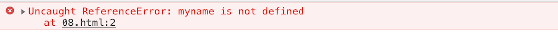 同样执行第2行的时候,由于变量myname函数也未定义,所以同样也会报错。